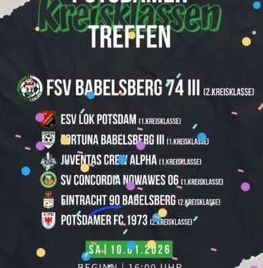 Am Sonnabend den 10.01.2026 nahm Fortuna Babelsbergs Dritte am „Potsdamer Kreisklassentreffen“ in der Halle „Am Luftschiffhafen“ teil, das vom FSV Babelsberg 74 organisiert worden war. Weiter dabei waren der ESV Lok Potsdam, Juventas Crew Alpha, der SV Concordia Nowawes 06, Eintracht 90 Babelsberg und der Potsdamer FC 1973.