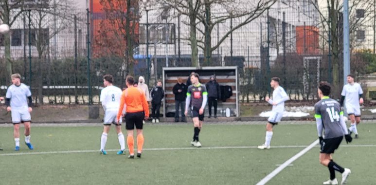 Das zweite Testspiel des Jahres 2026 hing am Vormittag noch am seidenen Faden, denn es hatte in der Nacht Schneenachschub gegeben bzw. schneite noch und es war fraglich, ob der Platz rechtzeitig geräumt werden konnte bzw. ob die Temperaturen von knapp über null Grad mithelfen würden, den Schnee zu schmelzen. Das gelang und so stand zum Anstoß um 14 Uhr ein grüner Kunstrasenplatz zur Verfügung.